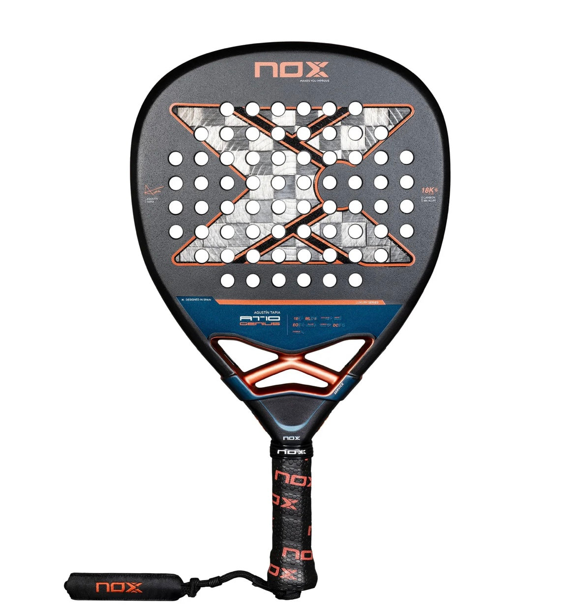 Développée en collaboration avec Agustín Tapia pour la saison 2025, la NOX AT Luxury Attack 18K Alum est destinée aux joueurs offensifs cherchant une puissance maximale et une précision chirurgicale. Avec son format diamant et ses technologies de pointe, elle offre un contrôle total du jeu et une sensation unique de vitesse et d’agressivité sur le terrain.