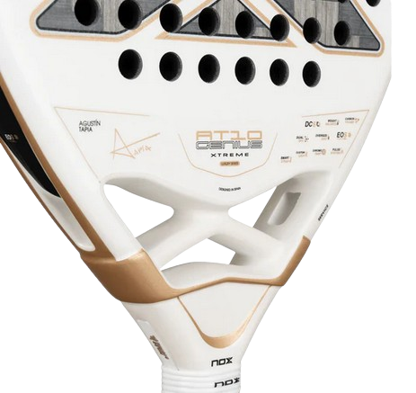 Conçue en collaboration avec Agustín Tapia, la Nox AT10 Genius 12K Alum XTREM 2026 incarne l’équilibre parfait entre puissance et contrôle. Son nouveau tissage en carbone 12K Alum XTREM offre une rigidité accrue, une durabilité exceptionnelle et des sensations constantes malgré les variations de température. Grâce à son nouveau moule et à son poids ajustable, cette raquette haut de gamme s’adresse aux joueurs exigeants souhaitant des performances optimales sur tous les coups.